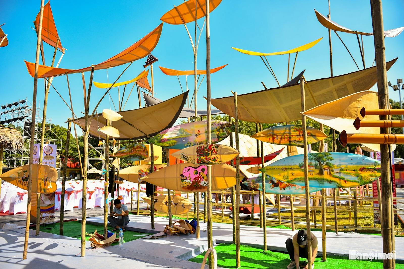 Festival được tổ chức trên diện tích hơn 4.000m², với 350 gian hàng bố trí thành nhiều không gian: Tôn vinh, Di sản & Bảo tồn, Triển lãm chuyên đề, Giao lưu nghệ nhân - nghệ sĩ quốc tế và trải nghiệm ẩm thực OCOP. (Ảnh: Hà Nội Mới)